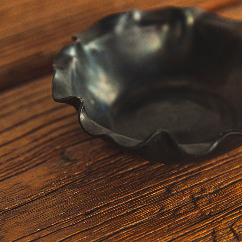With its deep bowl shape, sturdy round base, and twisted handle, this candle holder is made to hold more than just a flame — it holds atmosphere.