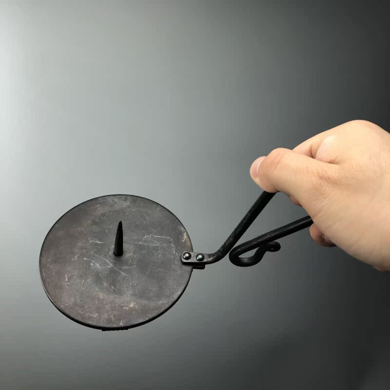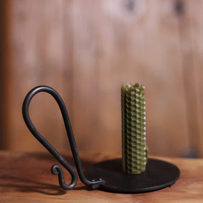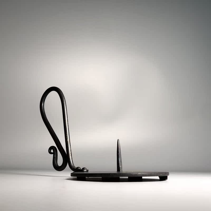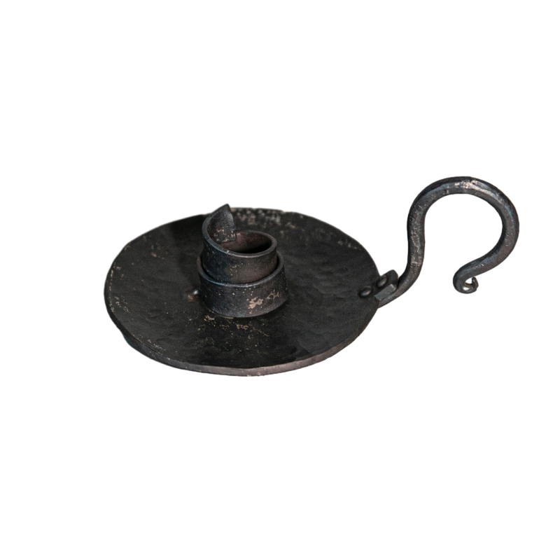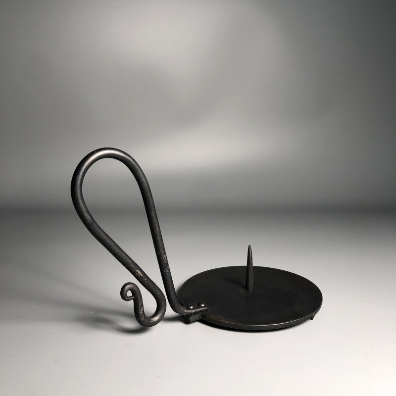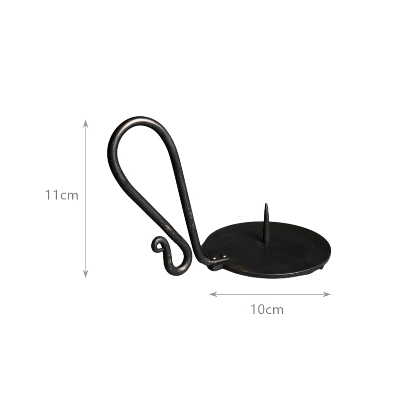 Hand Forged Iron Bowl Tabletop Taper Candlestick With Handle