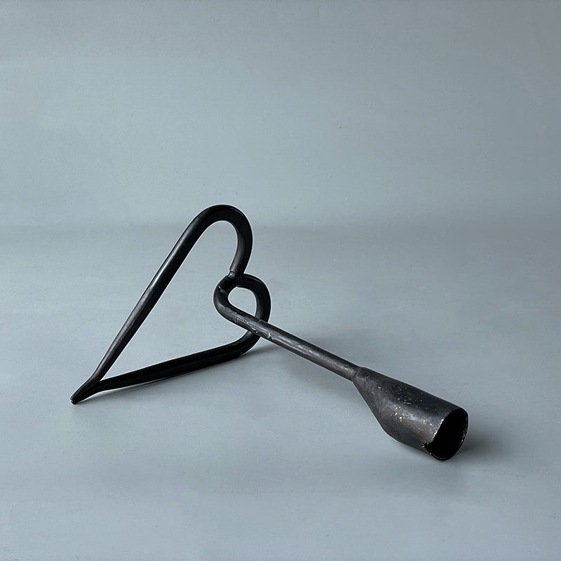 This candlestick is made of traditional iron forging technology, with an elegant heart-shaped outline. Every detail reveals the warmth and ingenuity of the craftsman. It is suitable for pastoral, industrial or bohemian style homes. When the candlelight flickers, the coldness of the iron and the romance of the heart shape form a clever contrast, casting intertwined light and shadow, creating a warm and rustic atmosphere.