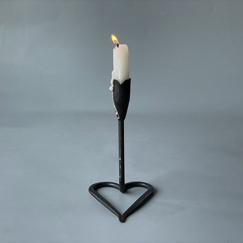 Hand Forged Iron Heart Shape Tabletop Candlestick