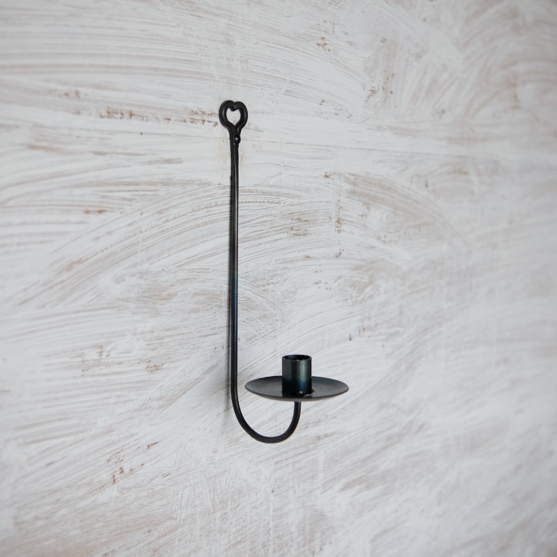Hand Forged Iron Heart Wall-Mounted Candlestick