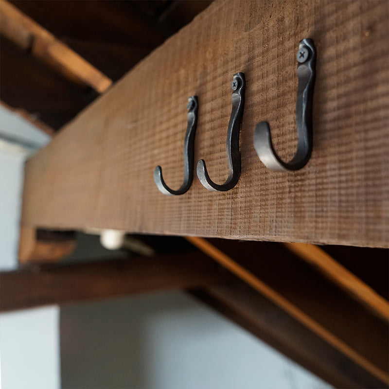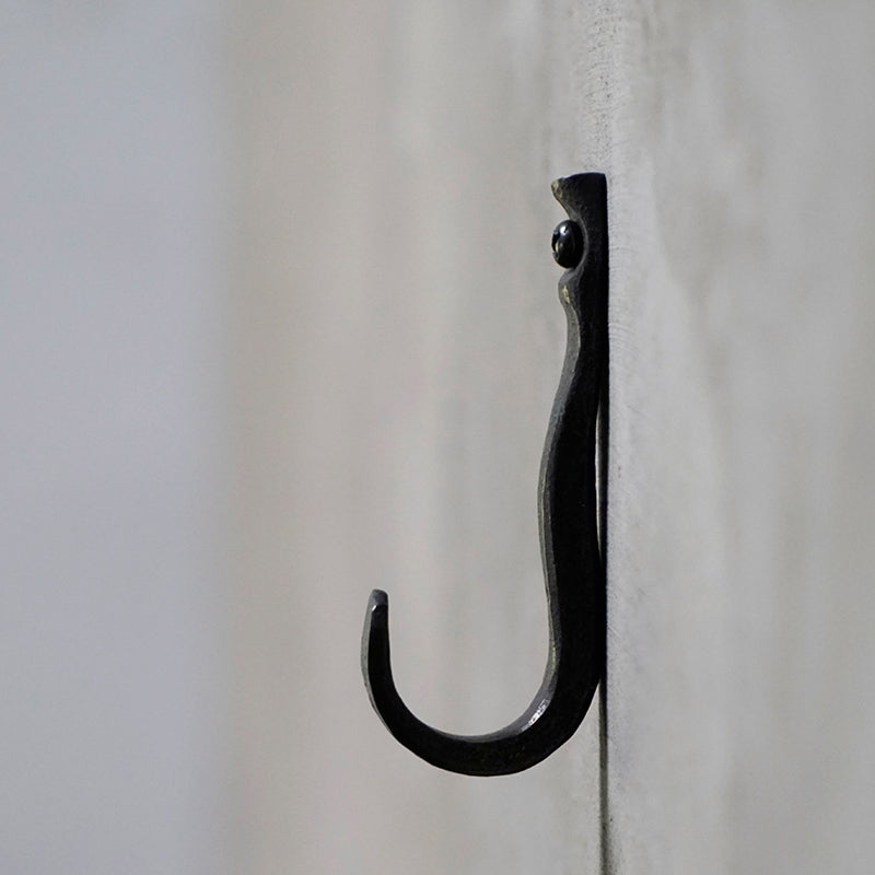 Add a touch of rustic charm to your home with this authentic blacksmith-crafted horseshoe nail hook. Each piece is meticulously hand-forged from a horseshoe nail, showcasing the timeless artistry of traditional blacksmithing.Hand-forged using traditional blacksmithing techniques, ensuring each hook is unique with its own character.Made from high-quality horseshoe nails, providing strength and longevity for everyday use.Perfect for hanging keys, kitchen utensils, jewellery, or as decorative accents in any room.Designed for straightforward mounting on walls, wood panels, or other surfaces with a colour matched screw included.