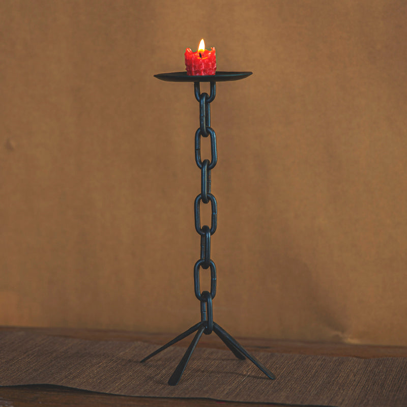 This vintage candle holder is made of solid heavy cast iron and has a beautiful patina. It is a high quality handmade blacksmith piece with a beautiful surface structure and a sculptural Brutalist look. The candle holder has a beautifully shaped base with a tray on top to hold a variety of candles.