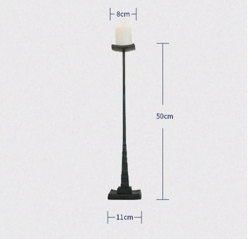 This wrought iron candlestick is more than just a functional object; it is a symbol of craftsmanship and sophisticated design. This candlestick brings elegance to your space through candlelight.Like a beacon from bottom to top, the candlestick is handcrafted. The sturdy bottom plate ensures the stability of this tall candlestick, while the top plate of the same design supports the candle and catches the melted wax.