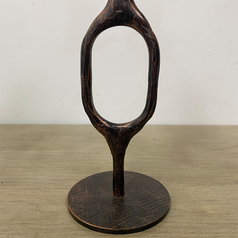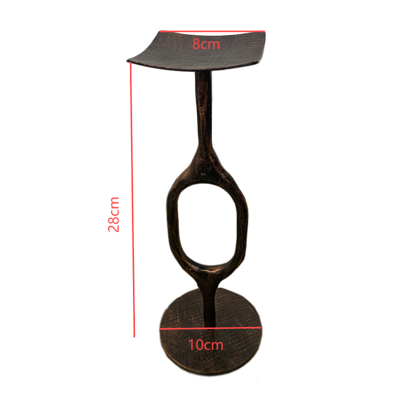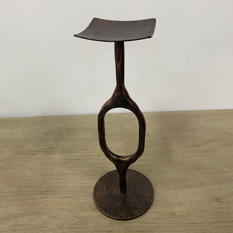 This candlestick is handcrafted using traditional wrought iron techniques, turning cold metal into a work of art with warmth. The overall design is simple and geometric, with clean and dynamic lines. Complement an industrial living room with this rust candleholder. Sleek, clean lines and simple geometric shapes make it an easy, modern upgrade.