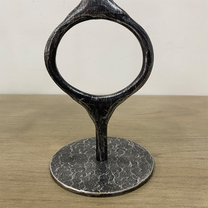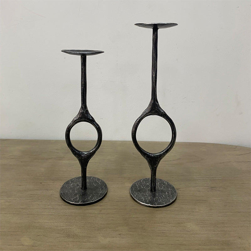 This candlestick is handcrafted using traditional wrought iron techniques, turning cold metal into a work of art with warmth. The overall design is simple and geometric, with clean and dynamic lines. Complement an industrial living room with this rust candleholder. Sleek, clean lines and simple geometric shapes make it an easy, modern upgrade.