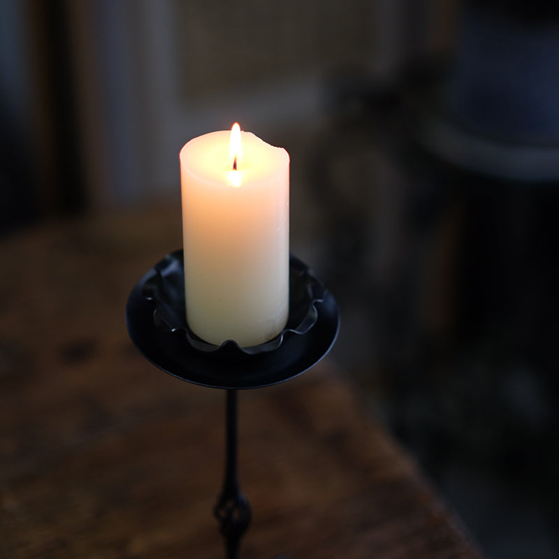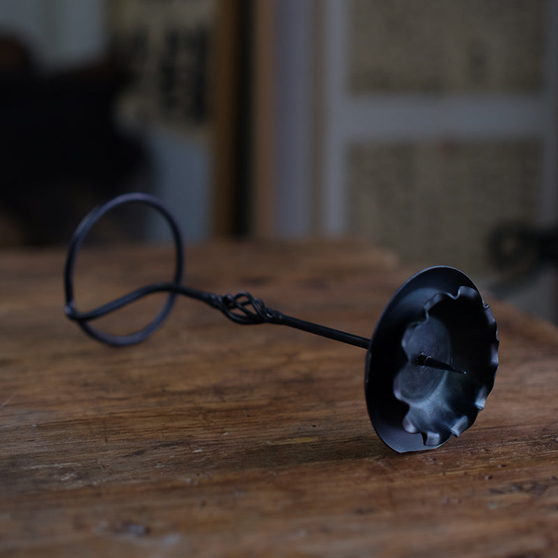 The base of the candlestick is steady, holding up the slender candle needle, while the spiral pattern in the middle adds a bit of dynamics to the overall posture - as if the still metal is still slowly rotating, but no one can see it. When the candle is lit, the flame moves and jumps between the gullies of the twisted pattern, the iron color reflects the warm light, and a hint of warmth is revealed in the coldness. It is both an artifact and a solidified melody, standing silently on the desk, waiting for the firelight to give it the illusion of flow again.