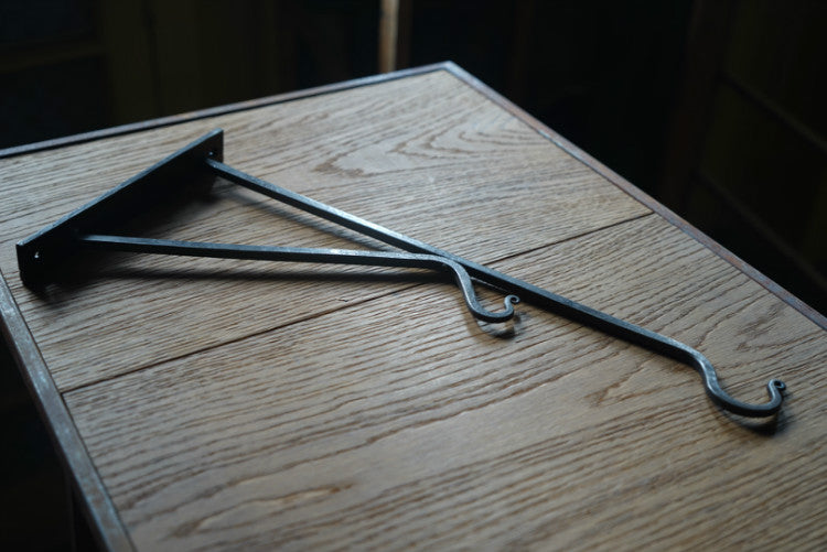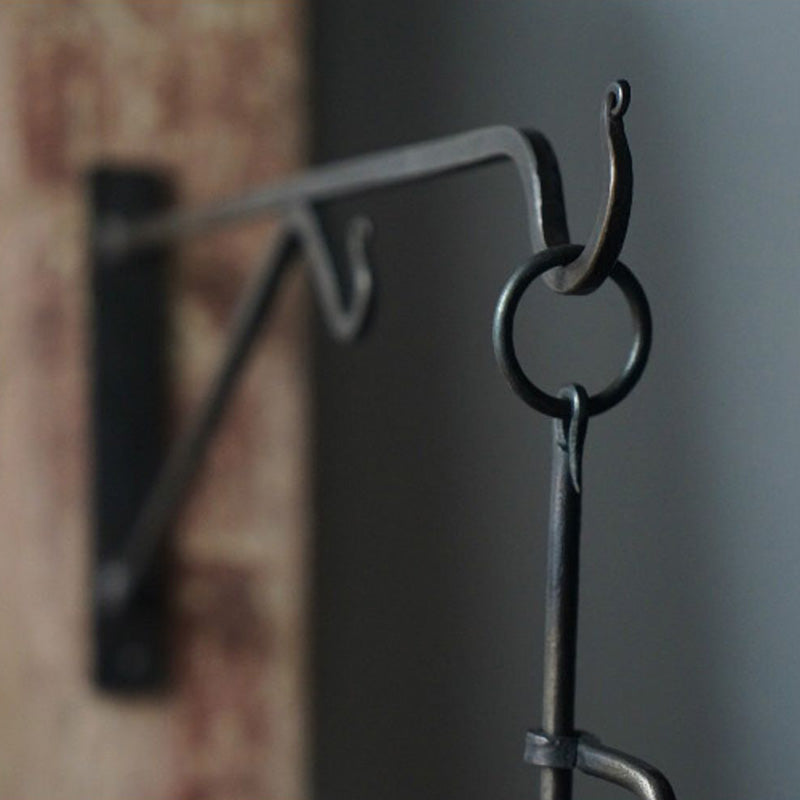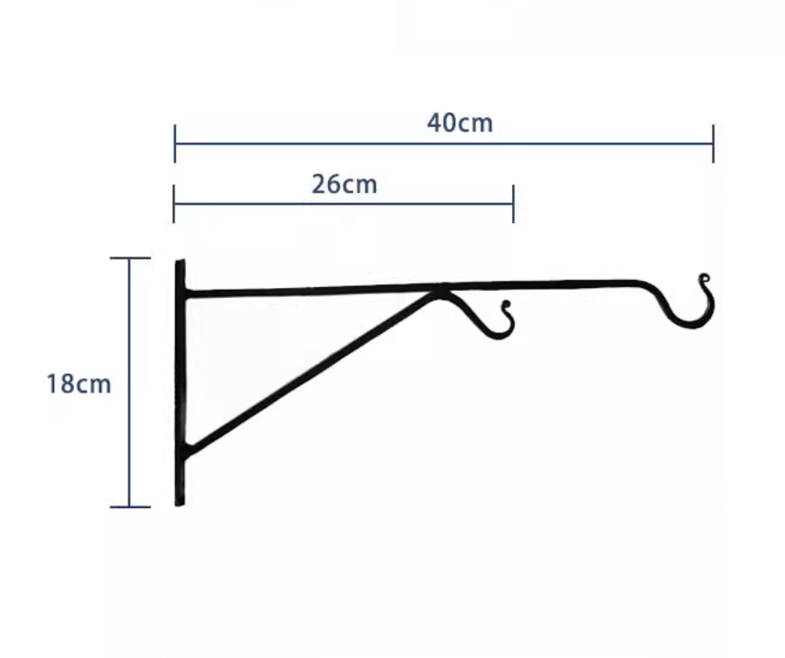 This bracket is often used to hang flower baskets, lanterns or other decorations.Each hook is an art of time, hammered by hand by an experienced blacksmith with 20 years of experience using traditional iron forging techniques, and high-temperature quenching gives wrought iron a unique toughness. Every concave and convex hammer mark and flame-baked texture is a unique natural mark, giving the cold metal a warm vitality.